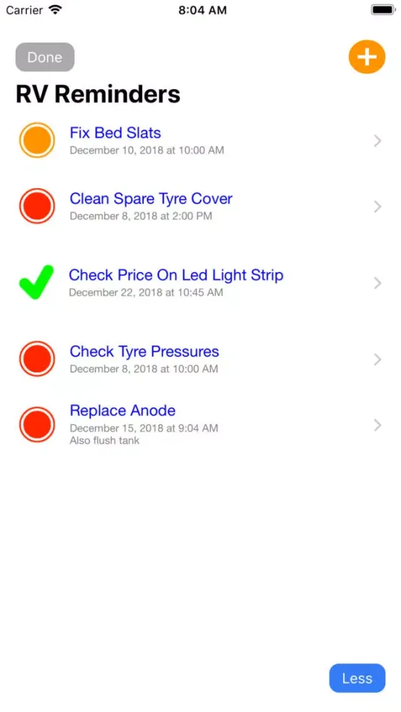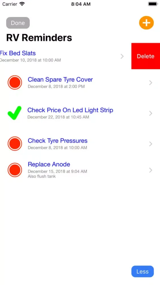 Say you need to replace your Anode in your hot water service once a year, simple add into RV Reminder, select the date and time to be reminded, then forget. At your time and date selected, a reminder will pop up..