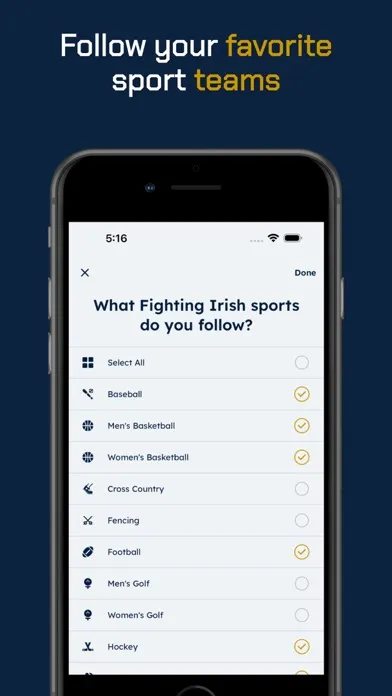 • Personalized Newsfeed: Follow your favorite sports, and instantly get the latest news, personalized for you. Have a customized sports experience, and be the first to know all about Notre Dame!