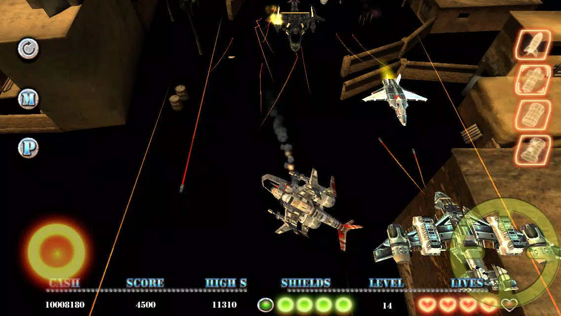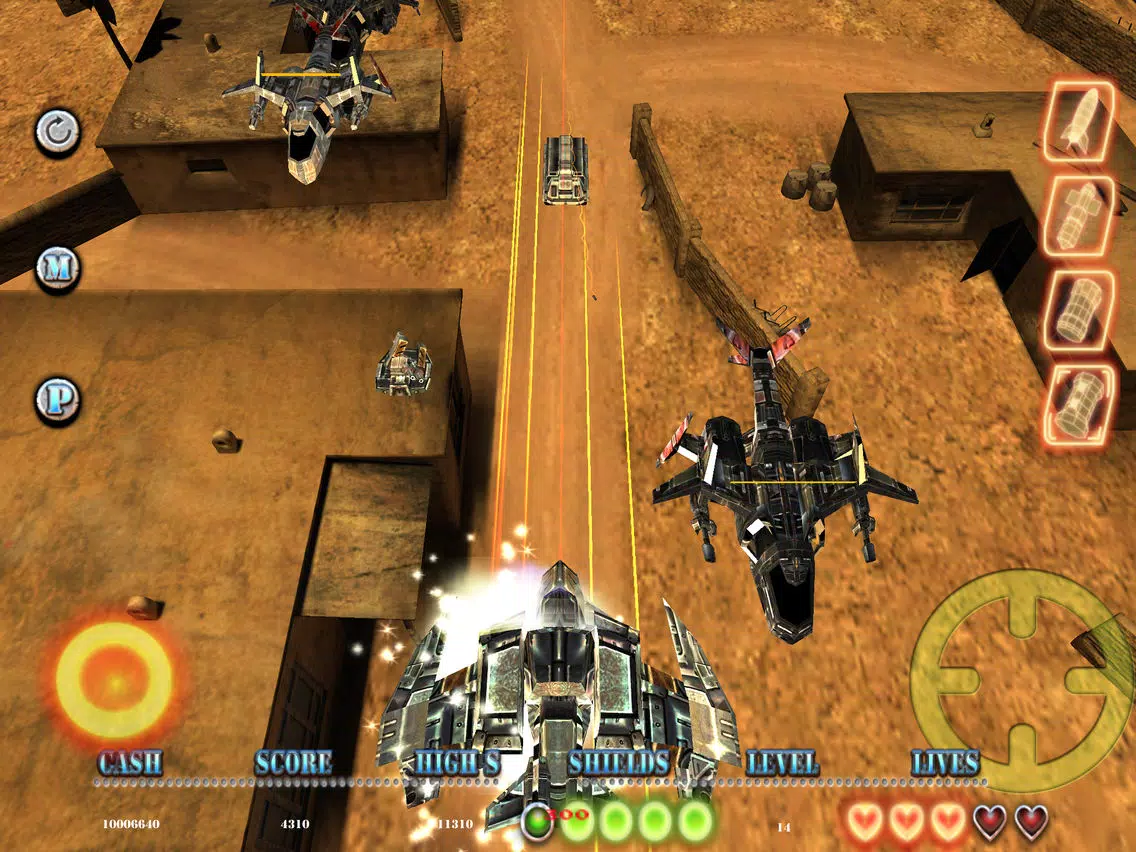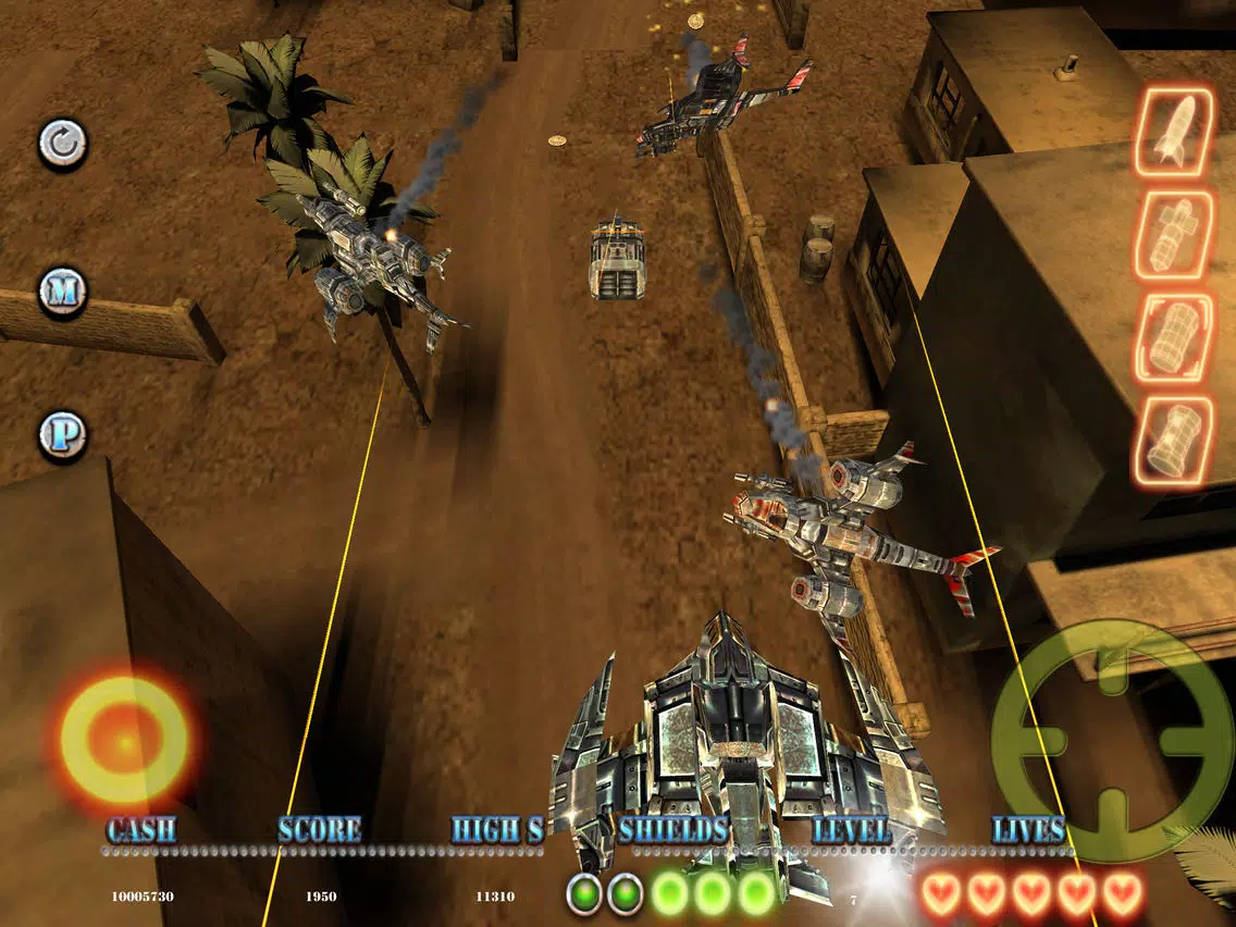 Blast everything in your path and collect pickups and coins.