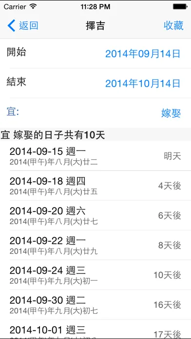 - 支持数百项的宜忌事项查询, 支持择吉结果收藏