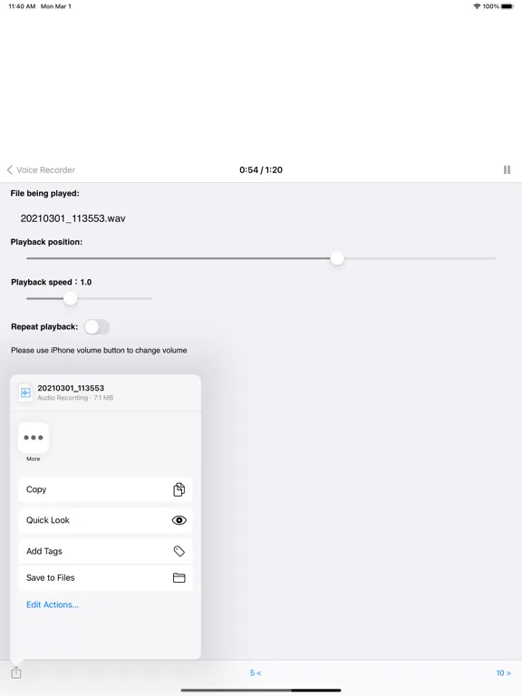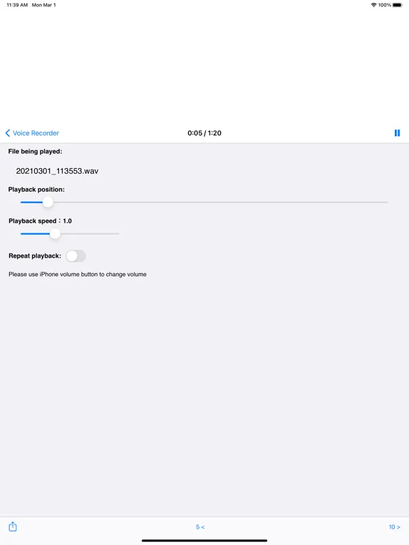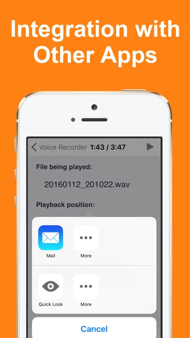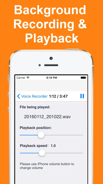 Voice Recorder is a recording app designed for simple operation. The app improves the user-friendliness of standard voice memo apps through background recording & playback as well as integration with other apps.