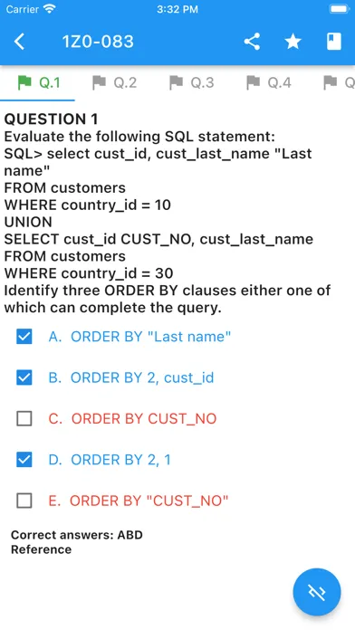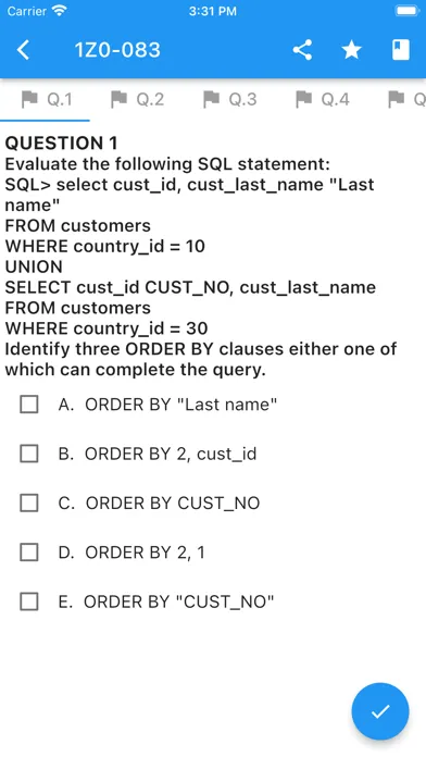 This app includes more than 300 questions to prepare for Oracle exam 01Z-071. The application allows you to study, mark important questions and automatically save the questions you have answered incorrectly so that you can easily check these questions again.