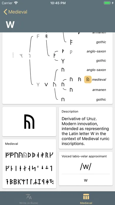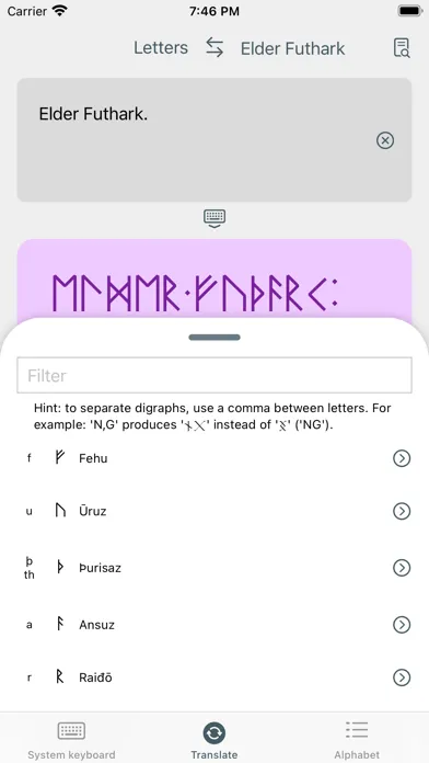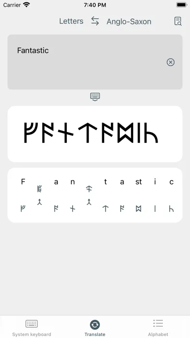 With this app you can transliterate text to runes based on a phonetic translation. This app translates the sounds of words, not the meaning. It is a good source for rune pronunciation and learning about the runic alphabets.