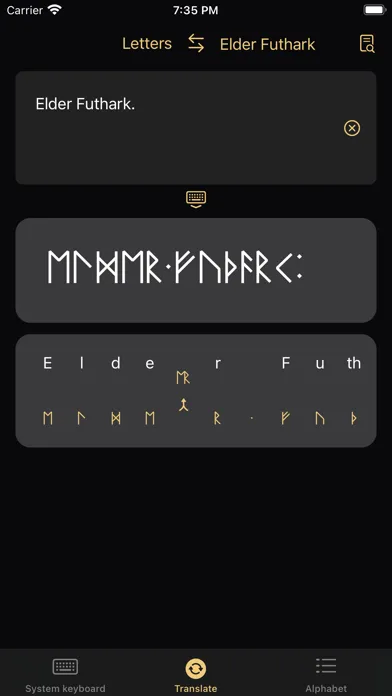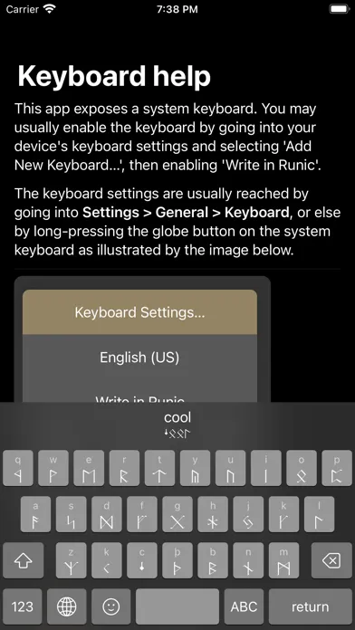 The app also allows exposes system keyboards for typing with runes in other apps.