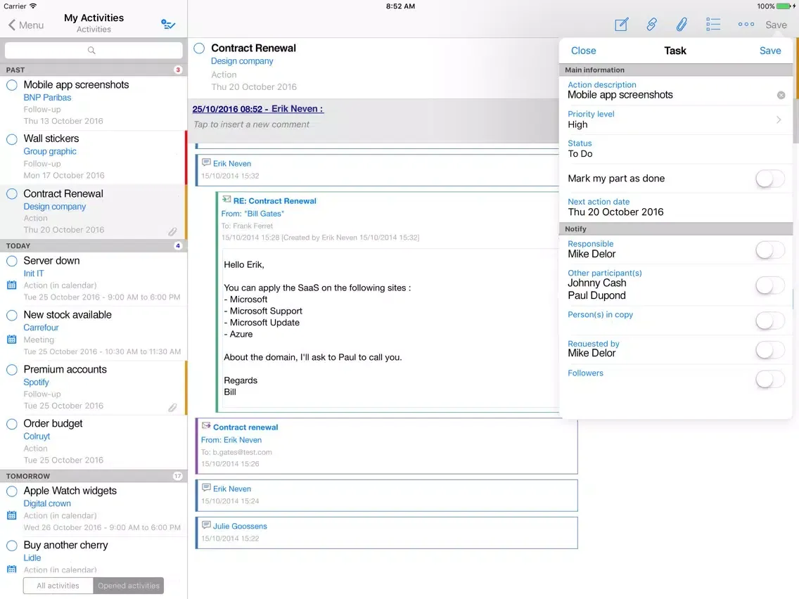 - Never forget an email: by adding a next action date to your emails, and you and your colleagues will never forget an e-mail anymore! No more stress!