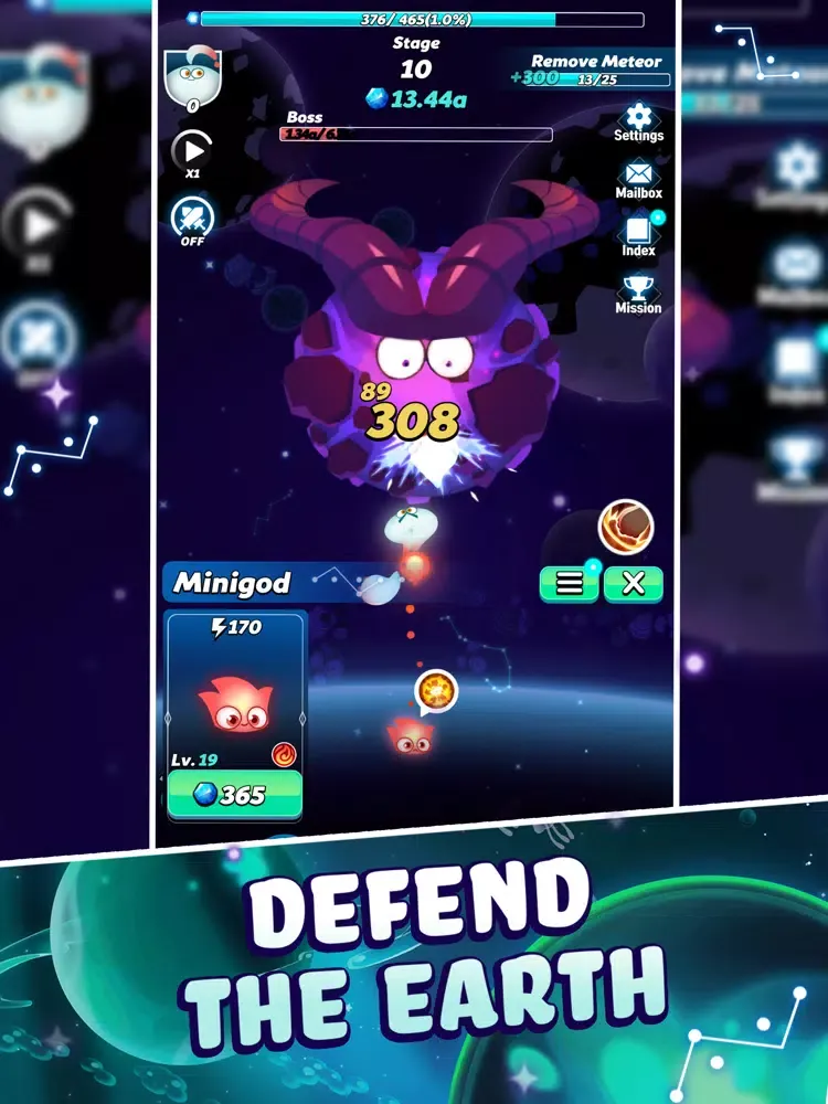 - Idle Gameplay: Defeat endless waves of meteors and huge intergalactic bosses! The epic space battle continues while you are AFK.