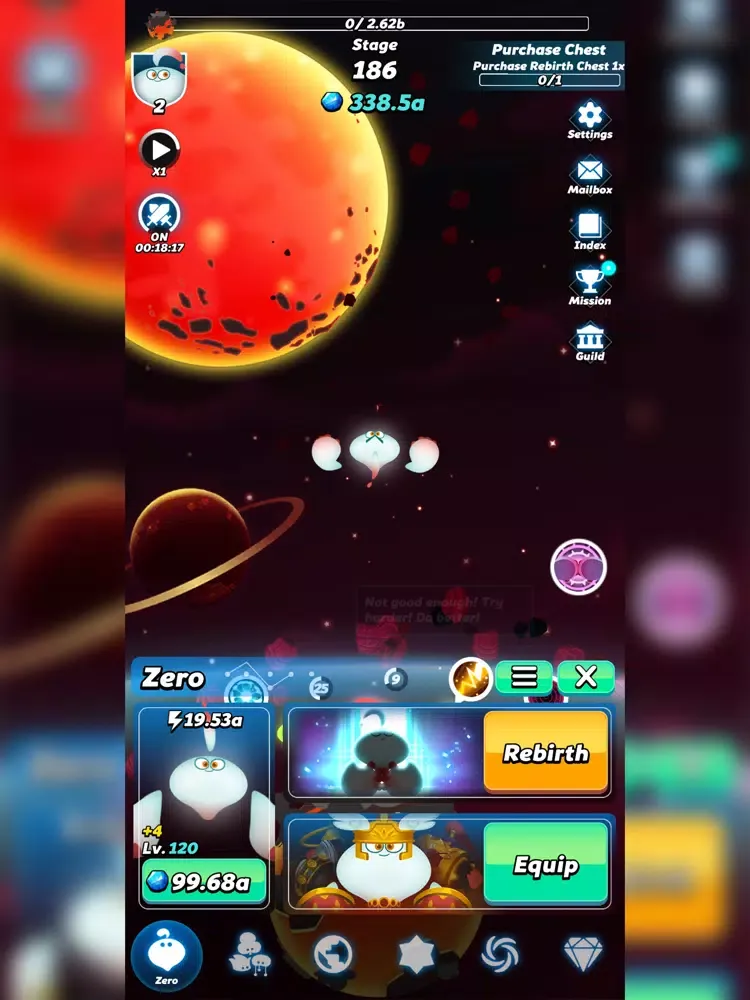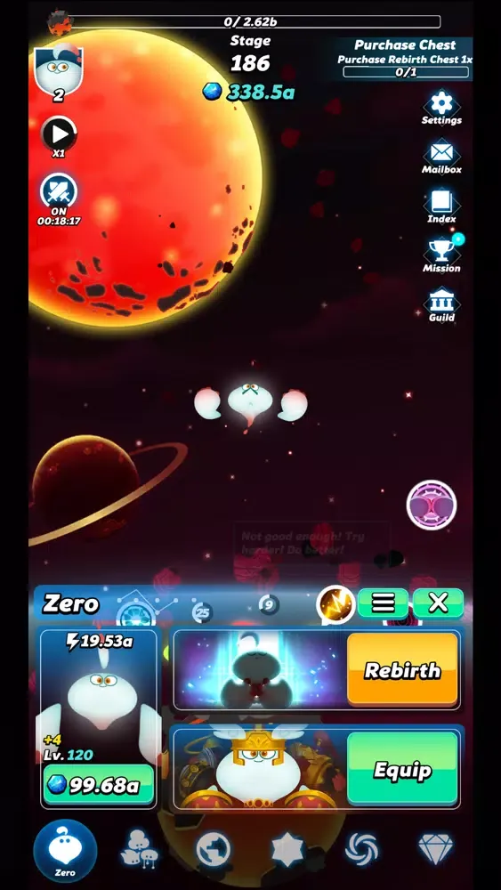 - Rebirth: The path to divinity is long and arduous. Help Zero become stronger with every rebirth.