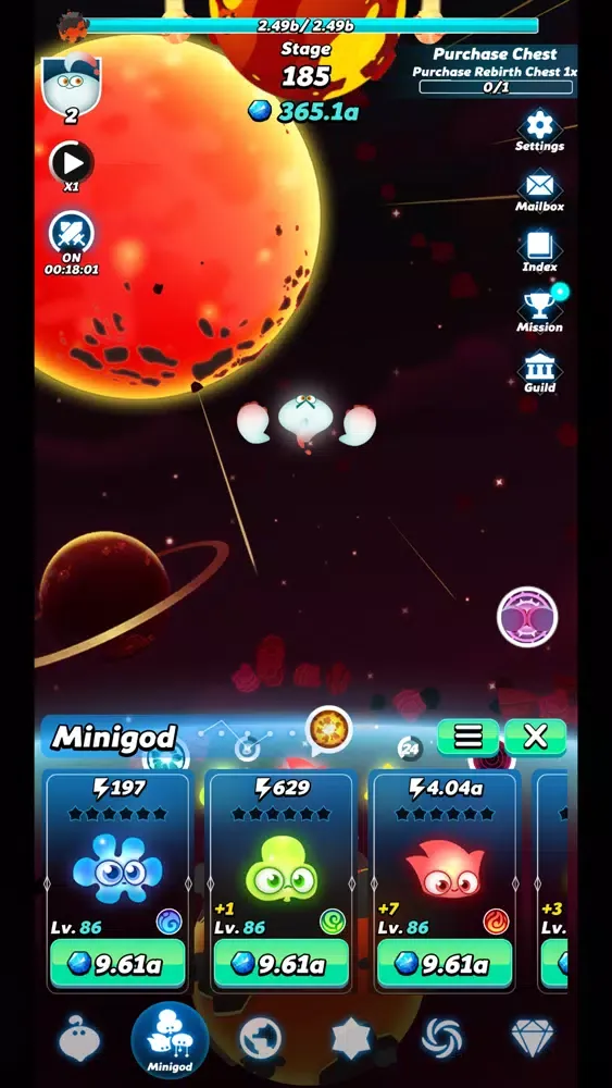 - Mini Gods: Discover and evolve over 50 Mini Gods of various elements to form an epic team.