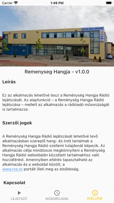 A "Reménység Hangja Rádió" online lejátszó alkalmazása.