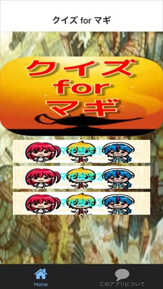 あの人気のマギがついにクイズアプリで登場!!このアプリをすることで、もう一度違った視点でマギを楽しむことができますよ(^^マギファンからマギ好きまで楽しめるアプリです。今すぐチャレンジ!!