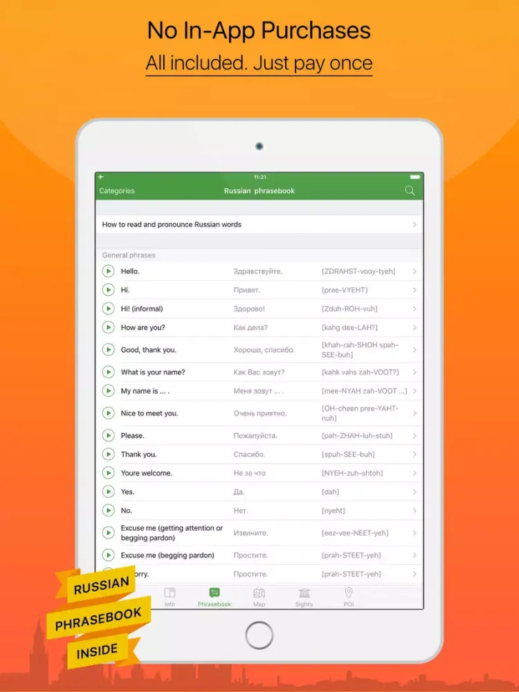 • English – Russian phrasebook (Basic Russian phrases and pronounciations).