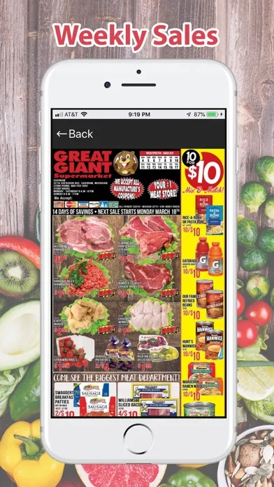 Welcome to the Great Giant Supermarket app. Get the app today and check out all our locations and our newest promotions and deals. Don't forget to view the weekly paper to stay in touch with our current sales. Thank you for your business!