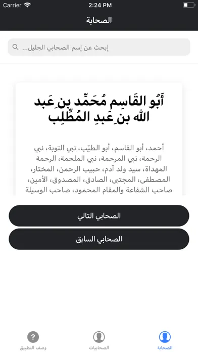 يسعى هذا التطبيق إلى التعريف بالصحابة رضوان الله عليهم. يوفر التطبيق معلومات عن حوالي 1500 صحابي و صحابية ممن كان لهم دور كبير في نقل الدعوة في صورة سيرة أشرف الخلق, نبي الله محمد عليه أزكى الصلوات.