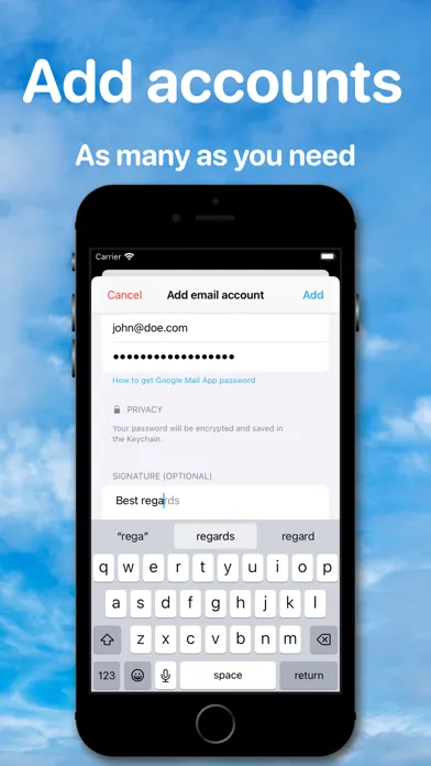 Set up your email provider of choice in the app, and you're good to go. Every major email provider allows sending with SMTP protocol. You'll just need to create a specific password. There are links for instructions in the app to help with that.