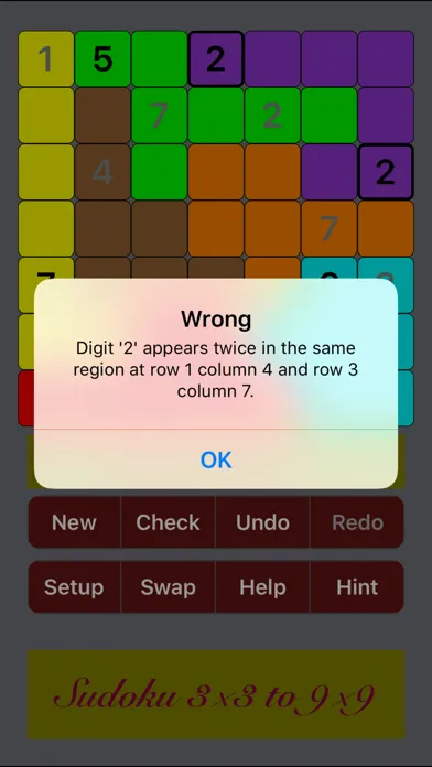 The app can be an education tool for a beginner or young kid to learn Sudoku, by starting with 3x3 sizes, and then gradually increasing grid sizes. The irregular regions of puzzles introduces fun not seen in regular Sudoku, and those who have been good at regular Sudoku can try 9x9 irregular (nonomino sudoku). Very advanced Sudoku players can play 10x10 up to 16x16 sizes.