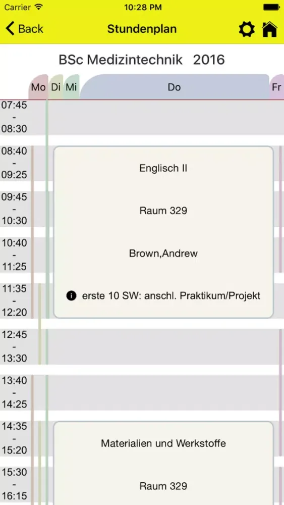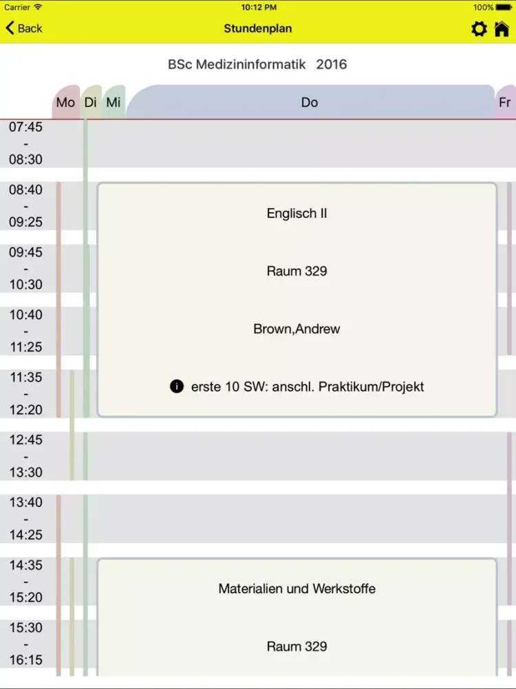 Mit dabei ist der aktuelle Stundenplan, das Modulverzeichnis, die wichtigsten Termine für Studierende, Kontaktadressen und weitere nützliche Links (Mensa Menuplan, Alumni FHNW, Universitätssport, Social Media).