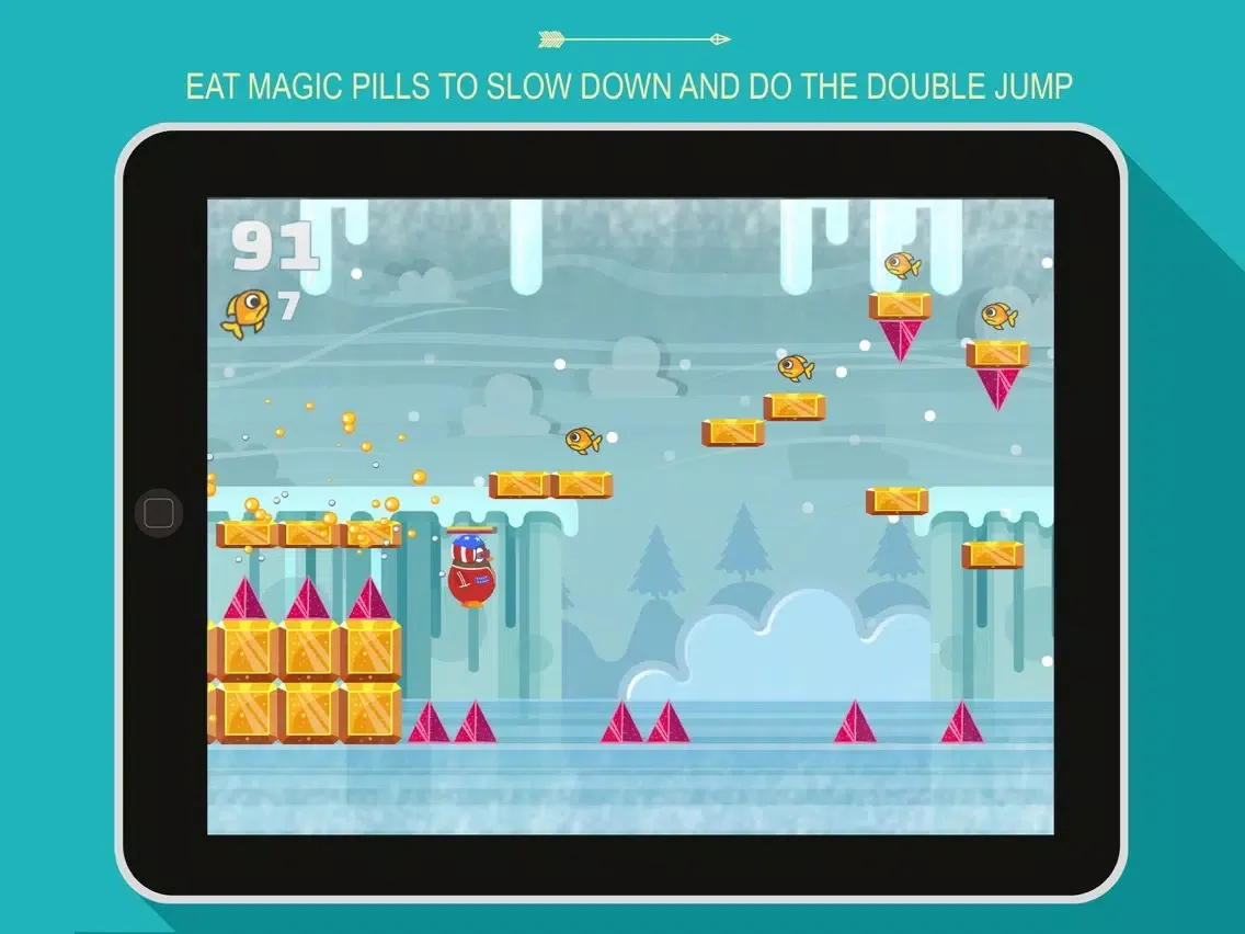 join this enjoying adventure and have fun overcoming spikes. Simply touch on the screen to jump up. Be careful, don't touch the spikes. Battle friends for the high score in this enjoying endless game with over 50 levels and many characters to unlock collecting fishes.
