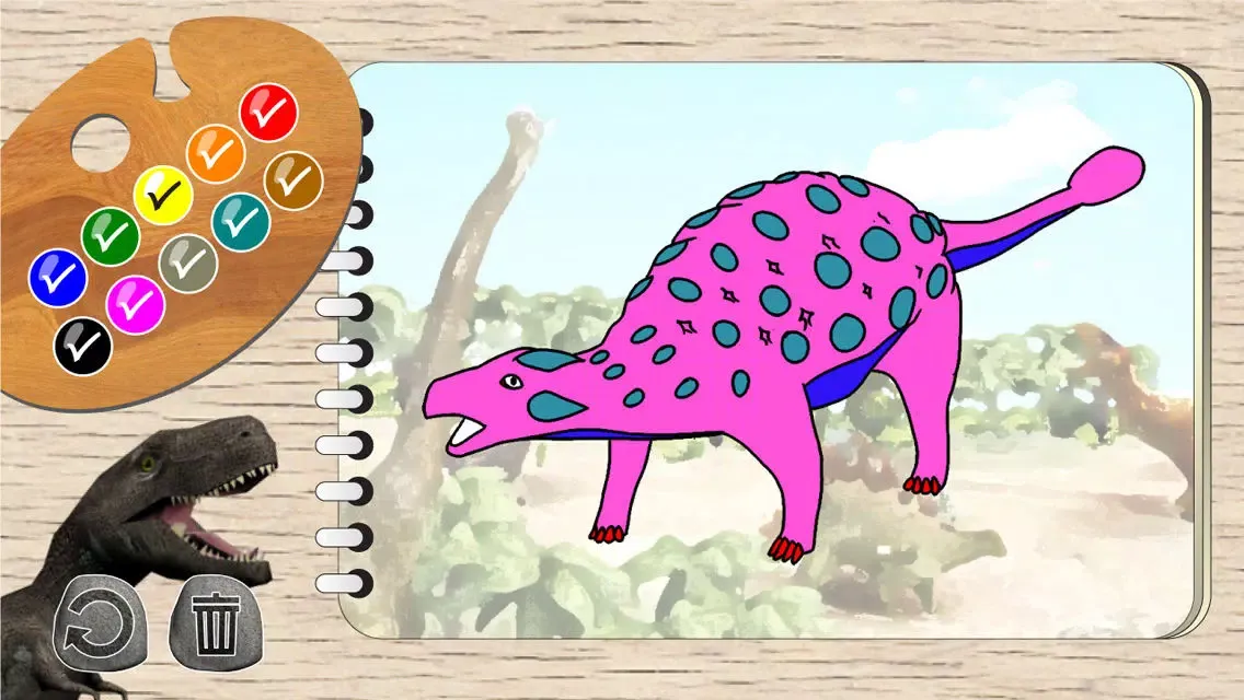 - 색칠하기 : 26종 각 공룡들을 알록달록 색칠할 수 있는 프로그램입니다. 해당 공룡들을 이쁘게 색칠해봅시다. 휴대폰 기능에 있는 스크린캡쳐를 하고 친구들과 부모님들께 자랑해보세요.