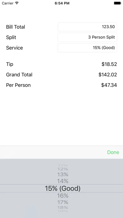 A fun and simple way to calculate the total cost of a meal. This app helps you figure out how much the total bill is going to be depending on the tip percentage that you wish to leave. You will also be able to see how much each person in the group is going to have to pay by setting the number of people that you wish to split the bill between.
