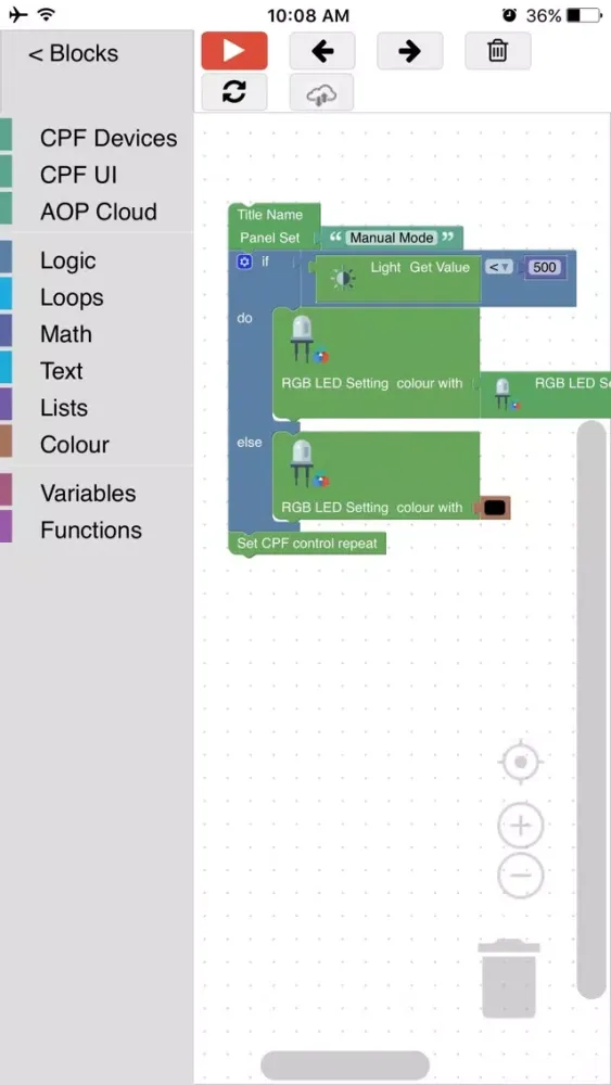 • Code Editing - Use Google blockly to change sensors behavior.