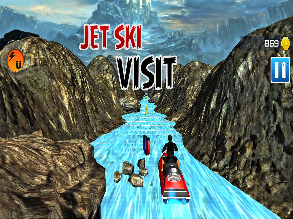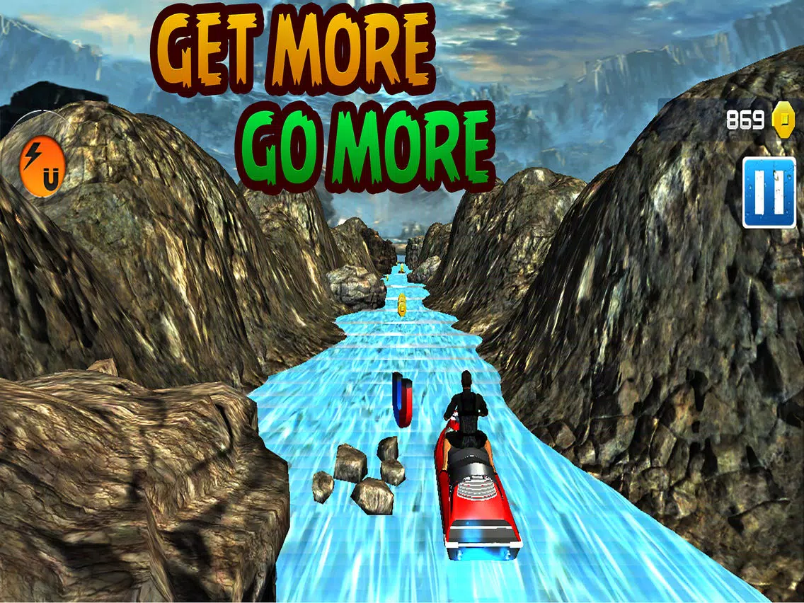 The Adventurous ride of your life. Ride your powerboat over the valley and get double your driving experience with a real featuring graphics of an incredible valley. Let's simulate your riding with jet ski safari today and catch some powerups for safe driving. An accelerator will help you to skiing fast and fast and add some flying effects into your powerboat which boost your jetski with high speed. While the magnetic power attract every coin towards you. So don't miss any power up. Avoid to hit with hurdles, and keep focus when having a real simulation of jetski in valley.