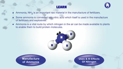 The app is based on the structure of Ammonia and its properties. Students can explore and practice the interactive activities and view the 3D simulations and videos for better understanding. The colorful 3D simulations, videos and interactive activities will help the students to learn about anhydrous ammonia, ammonia formula, ammonia molecule, ammonia structure, properties, chemistry in an easy and engrossing way.