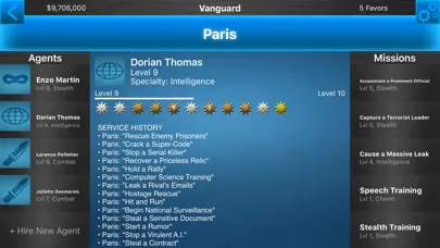 - Train your agents in the art of spy work: speech, vehicles, thievery and more