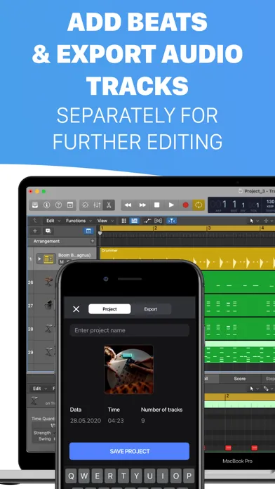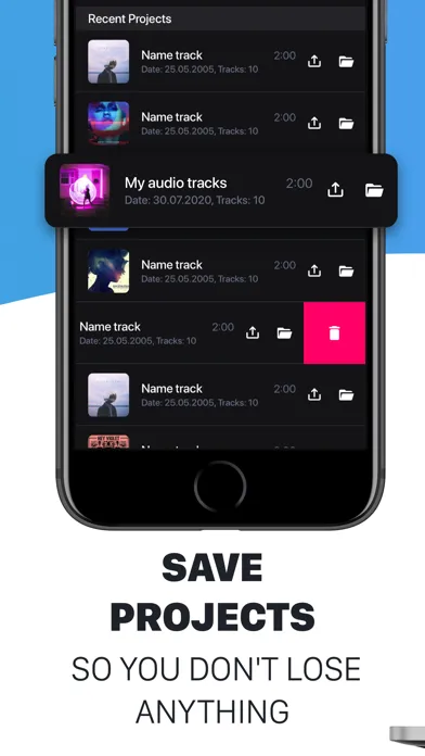 • Saving projects: Coming back to recording anytime