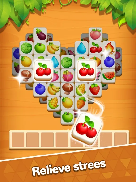 ● When you collect three tiles with the same image in the slots, they will merge and clear, freeing up space for more tiles..