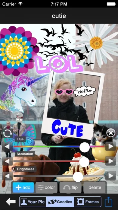 Just take a pic (or choose one from your library) click the plus sign and then add a fun fun cute image!