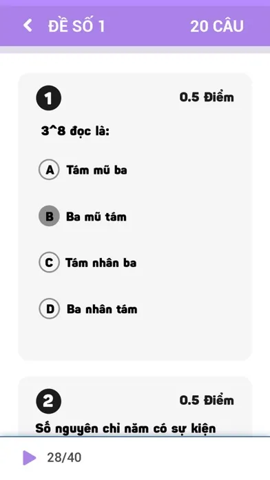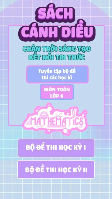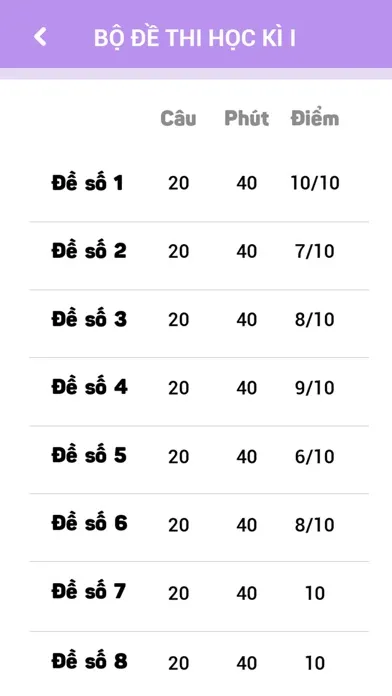 Ứng dụng 40 Đề Thi Học Kì Toán Lớp 6 có giao diện đơn giản dễ sử dụng, các em có thể tự làm, tự đánh giá thời gian làm bài, số điểm đạt được và làm đi làm lại nhiều lần để đạt kết quả cao nhất.