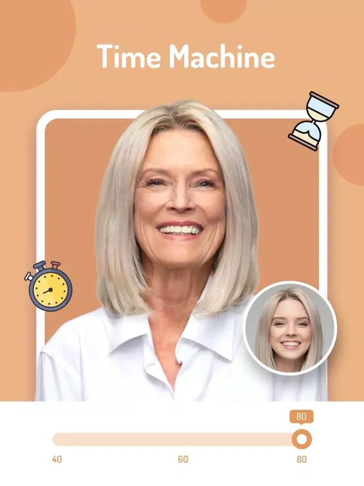 Are you curious about how you will look like in several years? With our Time machine can help you predict what you will look like in the next 20, 40 or even 60 years.