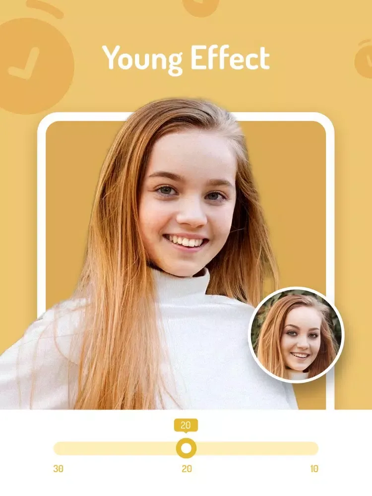 Try to use our popular young effect to change the age and become younger in seconds.