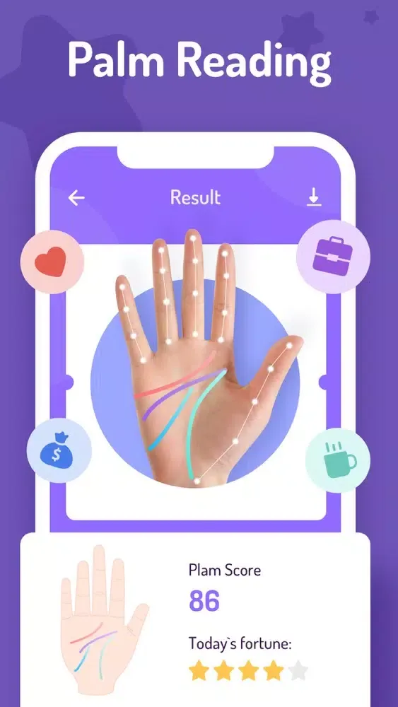 Your unique palm lines carry valuable information about your life path. Just scan your palm and get the information about your wealth, love, life and more.