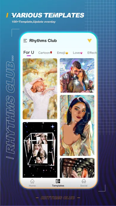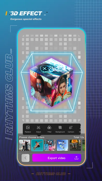 Rhythms club is the free music video editor with effects, also the best video maker app with song. Rhythms have a lot of popular templates/effects available for editing and a wide variety of music to choose from. With Rhythms, you can easily add music to video, edit video with music and pic, make lyrical videos with song. Download Rhythms clubs APP to create and edit video with music and photo for Instagram, Tiktok, Facebook, and so on!