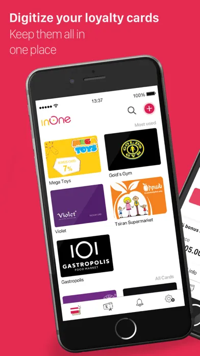 inOne is a digital platform where you can keep your loyalty cards of clothing brands, sport clubs, pharmacy... and register new ones without any form-filling.