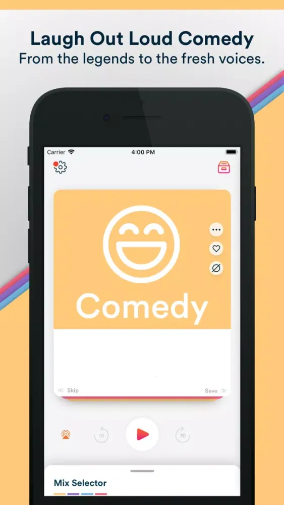 You don’t have to switch between music and news and podcasts and comedy; we do it for you. Simply choose one of your custom stations, and we’ll take care of the rest.