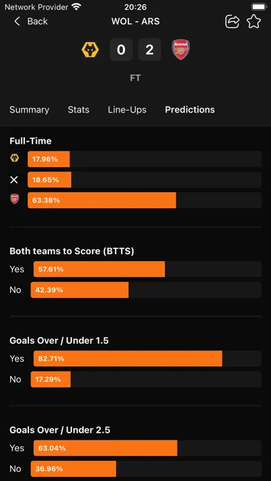 One of our app's unique features includes providing predictions in categories such as: Full-Time, Both Teams To Score (BTTS), Over/Under 2.5, Over/Under 3.5, Home Team Over/Under 0.5, Home Team Over/Under 1.5, Away Team Over/Under 0.5, Away Team Over/Under 1.5