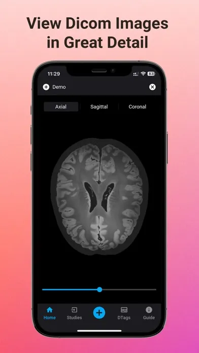 Users can switch between Axial, Sagittal and Coronal views from the same dataset.