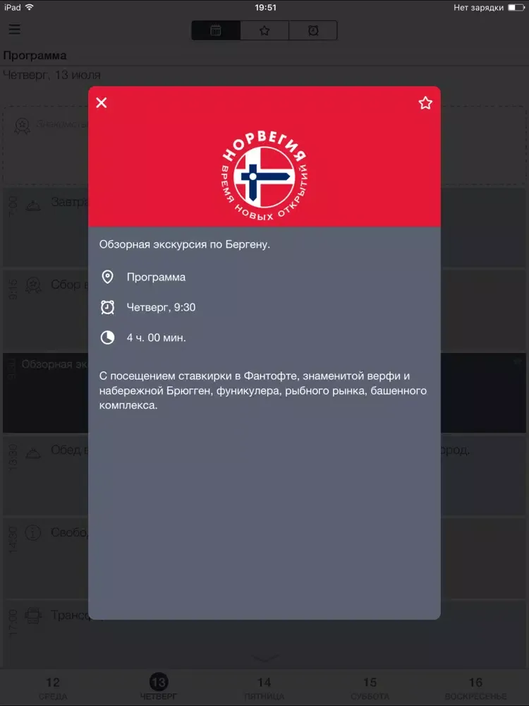 Официальное приложение “Норвегия: время новых открытий”, 12 - 16 июля 2017 год, Берген-Осло