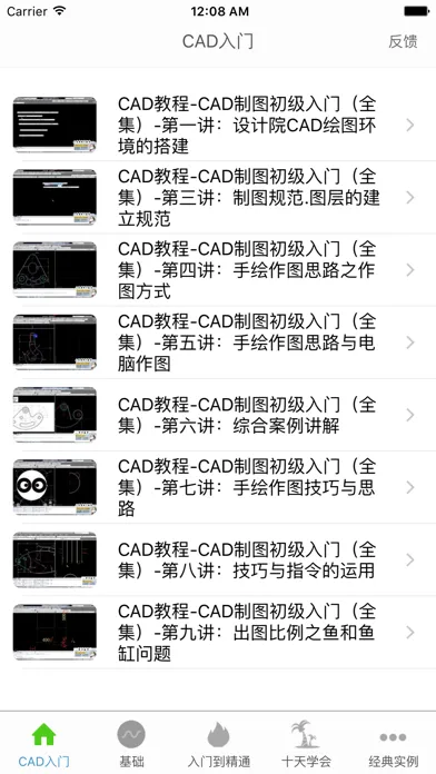 带视频功能的CAD教程苹果应用,另有图文并茂教程,易学又易懂。