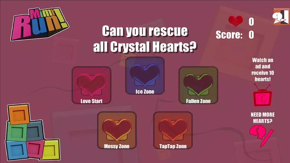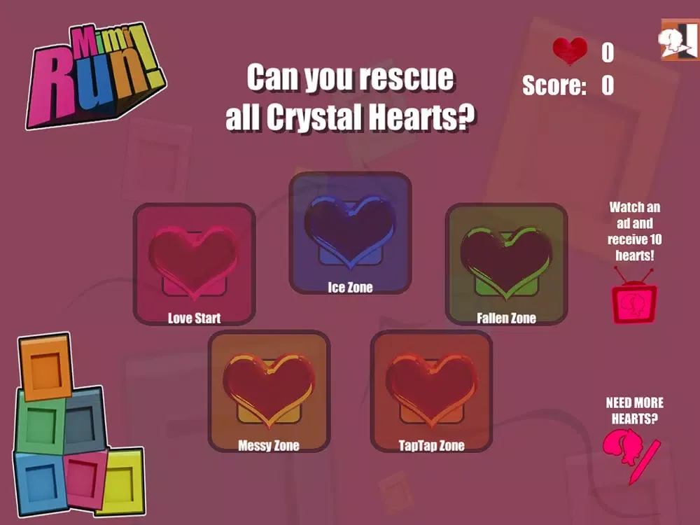 There are 5 crystal hearts on our world that spread love everywhere... One day, DarkMimi decided to play a prank... She took all five hearts to herself and left the world with no love... Let's help Mimi to get those hearts and give the love back to the world!