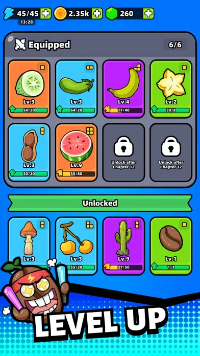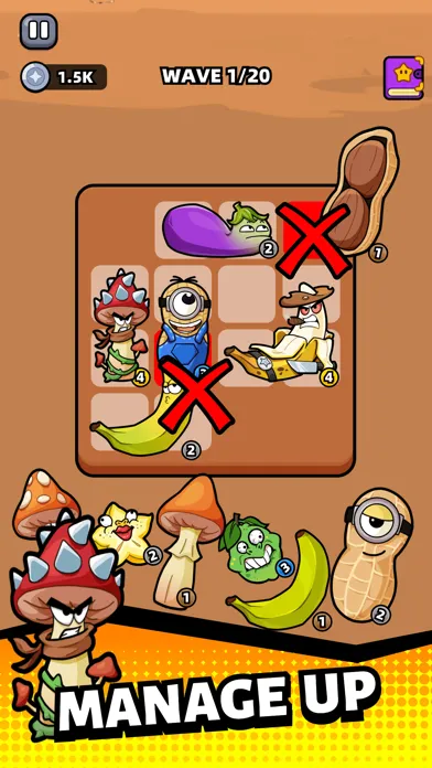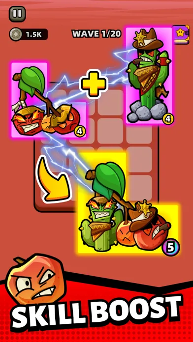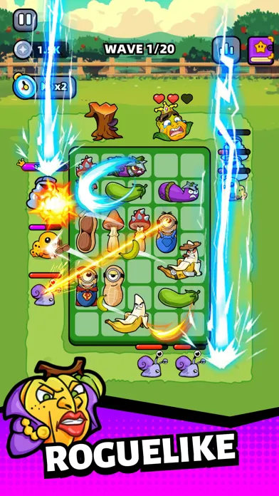 1. Match-2 Merge and Upgrade! Unlock more fruit and vegetable(F&V) weapons. Although they look weird I admit, they are really strong! Find identical fruits or vegetables(F&V) at the same level, tap and place them to merge and upgrade to a higher level, releasing stronger skills! Don't be dazzled by too many types, they are amazing I guarantee you~