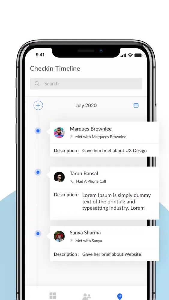 Check-In: Help you log your meetings or touchpoints with the people you are meeting