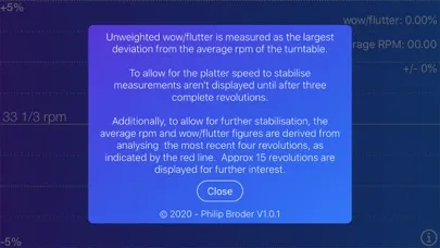 The most detailed Turntable Wow & Flutter display and analysis available on an iPhone.