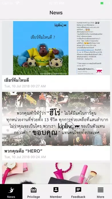 แอปพลิเคชั่นสำหรับลูกค้า Kipling Thailand