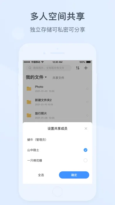 2. 家人共享:是自己,也是全家的私有云盘;支持多人使用,每个人享受独立存储空间保证用户隐私,也可以通过公共空间与家人、朋友分享精彩内容。