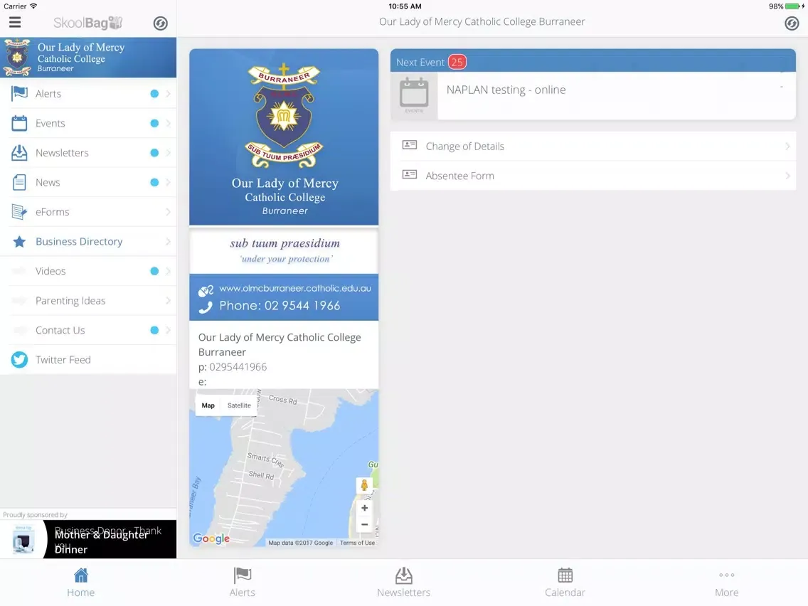 Our Lady of Mercy Catholic College Burraneer Skoolbag App for parent and student community. Download this App to be kept up to date with everything that is happening at your school. It features Events, News, Newsletters, Password Protected Content areas, Free push notification alerts direct from the school, Content Feed Stream in chronological order, Keyword Search, Parent eForms (for Absent Notes, Sick Notes and Parent Change of Details), Embedded Maps, Social Media Sharing, Send a Photo, Pin Your Favourites, Most Viewed.