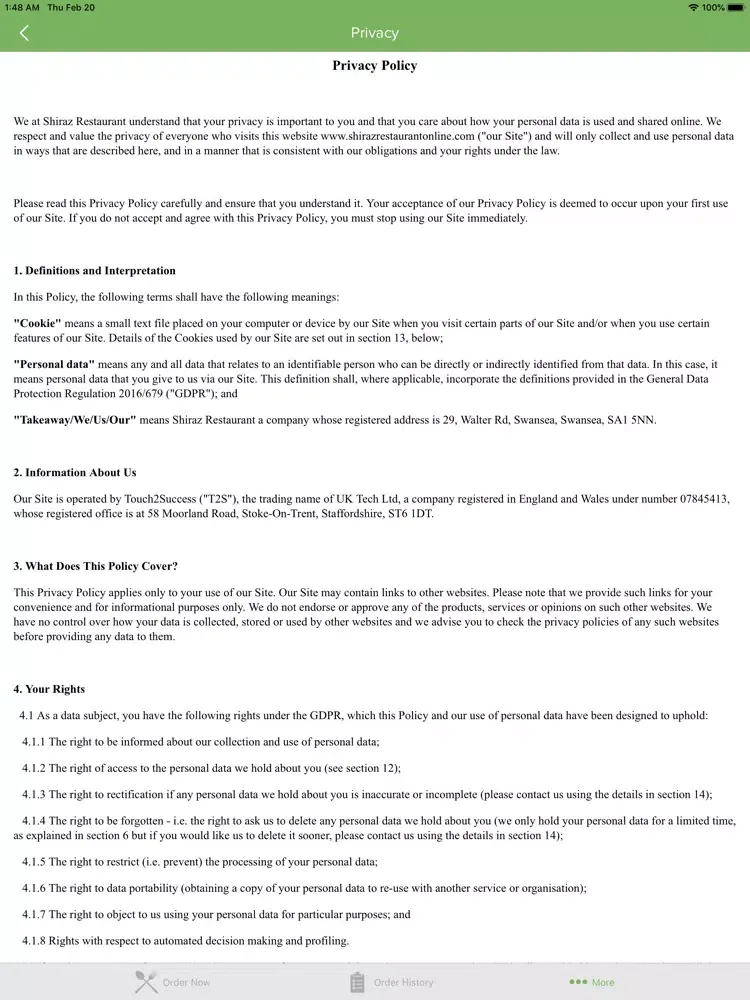 Thank you for visiting Shiraz Restaurant in Swansea. We hope you enjoy our online ordering App and your food.