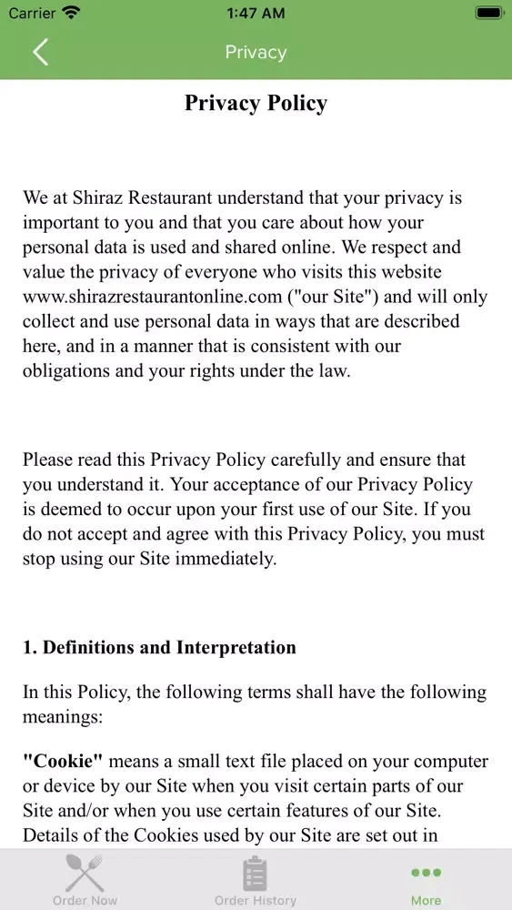 Shiraz-Restaurant. iPad Ekran Görüntüleri